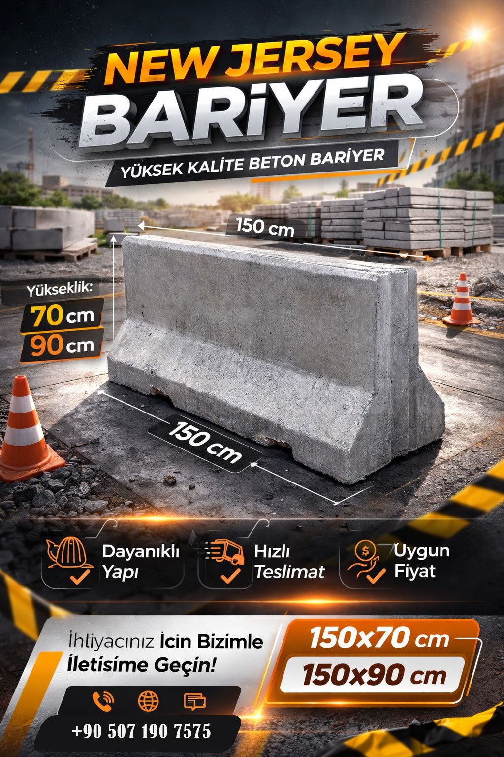 Telefon numaramızdan arayın, beton bariyer ölçüleri, fiyatları ve teslim süresi hakkında sizi en kısa sürede bilgi verelim.
